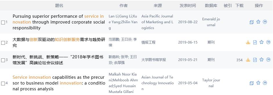 鼠标悬停到某篇文献,点击按钮可下载或取消收藏该篇文献,如图6.1.2。