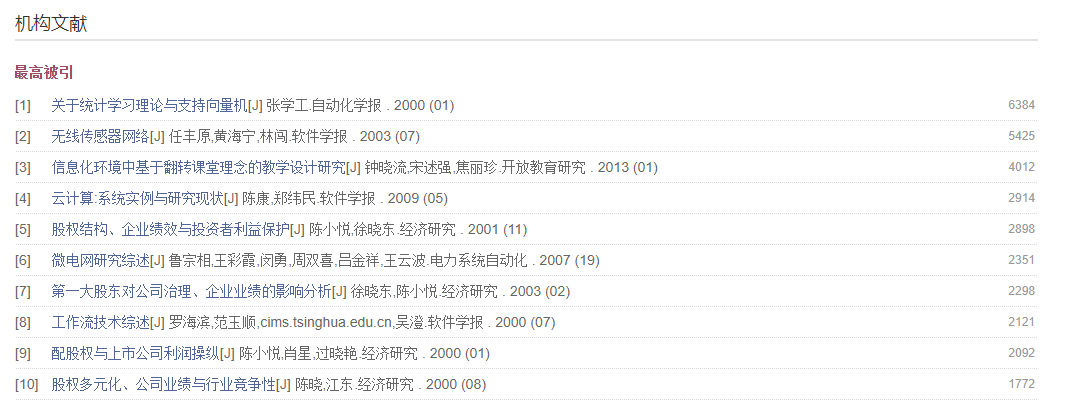 期刊、报纸、会议、辑刊的作者单位为原文给出的作者所在机构的名称。学位论文的作者单位包括作者的学位授予单位及原文给出的作者任职单位。年鉴的作者单位包括条目作者单位和主编单位。专利的作者单位为专利申请机构。标准的作者单位为标准发布单位。成果的作者单位为成果第一完成单位。视频的作者单位为主讲人单位。