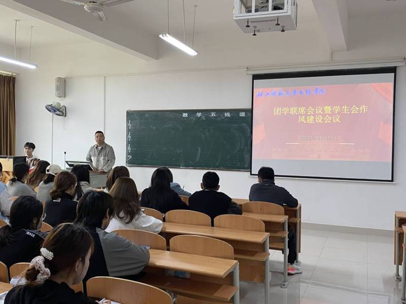 2021年4月16日中午11:50,PG线上平台(集团)官方网站团学联席会议暨学生会作风建设会议于活动中心305室成功召开。团委书记陈小龙、团委指导老师闵娜以及全体团学联学生干部参加本次会议。