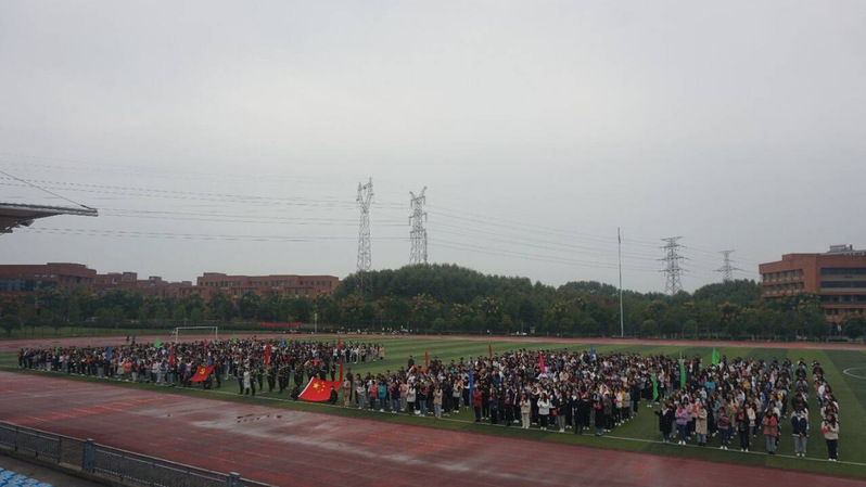 仪式开始,国旗护卫队队员们护送五星红旗进场。伴随着中华人民共和国国歌,五星红旗冉冉升起,全体师生行注目礼。团委学生副书记赵汝祎、学生会执行主席林鑫依次进行国旗下发言,校学工部部长汪崇文致辞,从树立爱国主义情感、学习知识本领、养成良好习惯三个方面阐述新时代青年的责任与担当。随后进行《我和我的祖国》合唱,挥舞小红旗的场面激励人心。最后,仪式在全体成员的三次齐声呐喊“请党放心,强国有我”中圆满结束。