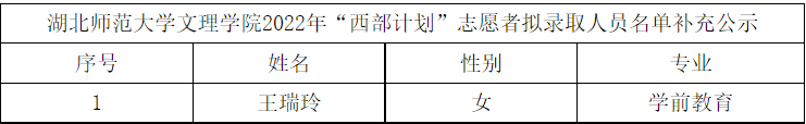 因学生自愿放弃,PG线上平台(集团)官方网站开展了2022年“西部计划”志愿者拟录取人员补录工作。现将拟录取人员补录名单予以公示。