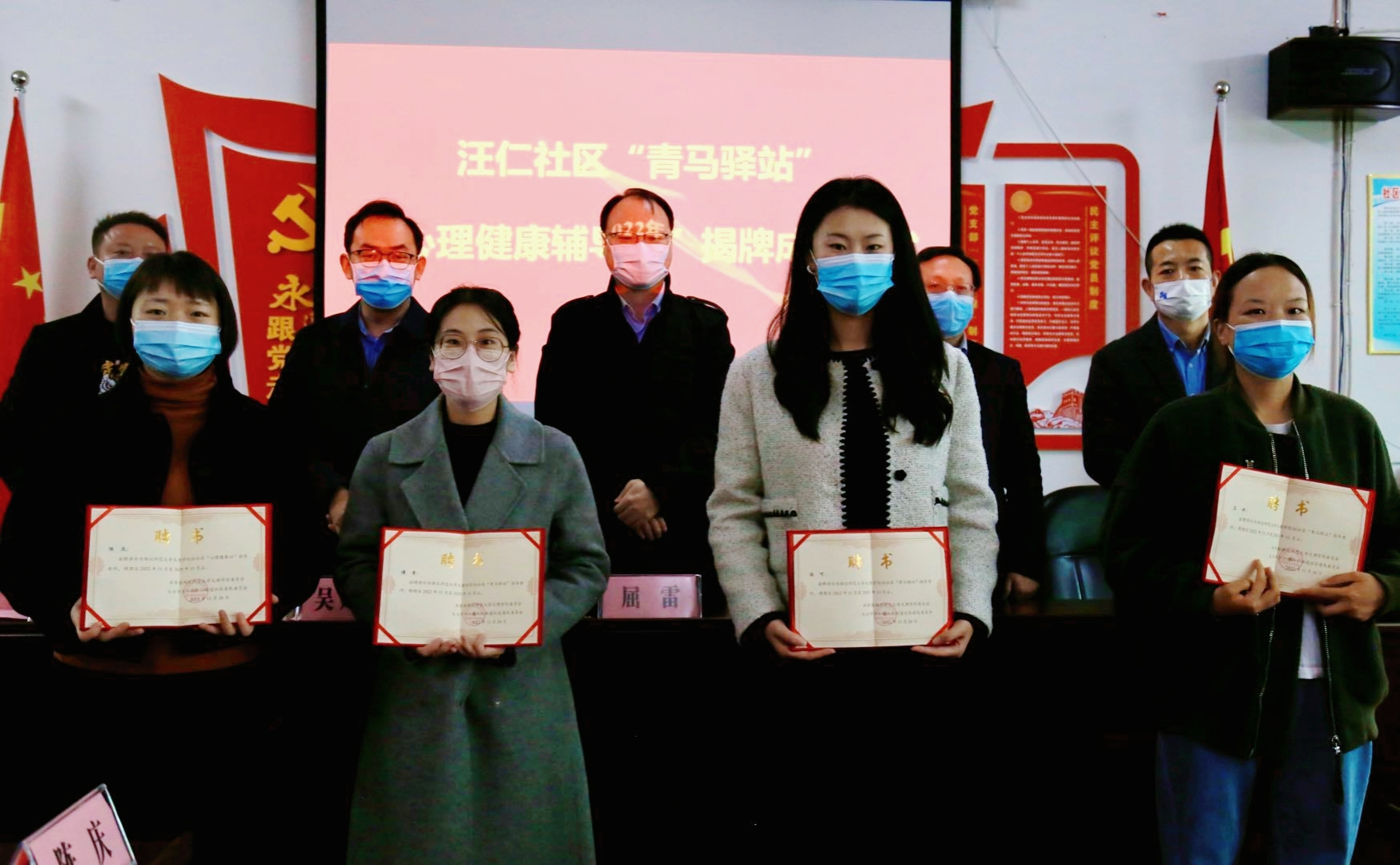 (通讯员:何馨妍、张力、张清)为大力弘扬志愿服务精神,探索基层现代化治理模式,推进“下基层察民情解民忧暖民心”实践活动走深走实,11月26日上午9点,汪仁社区在会议室隆重举行“青马驿站、心理健康辅导站”揭牌成立仪式。共青团黄石市委副书记屈雷、PG线上平台(集团)官方网站党委书记杨邓红、共青团黄石市委组宣部吴炜添、文理学院团委书记陈荟芸、心理咨询中心主任陈庆、教艺学部团总支书记谭青、团委指导老师汤可、汪仁社区党支部书记柯钦容及志愿者们参加了会议。会议由驻社区书记陈小龙主持。