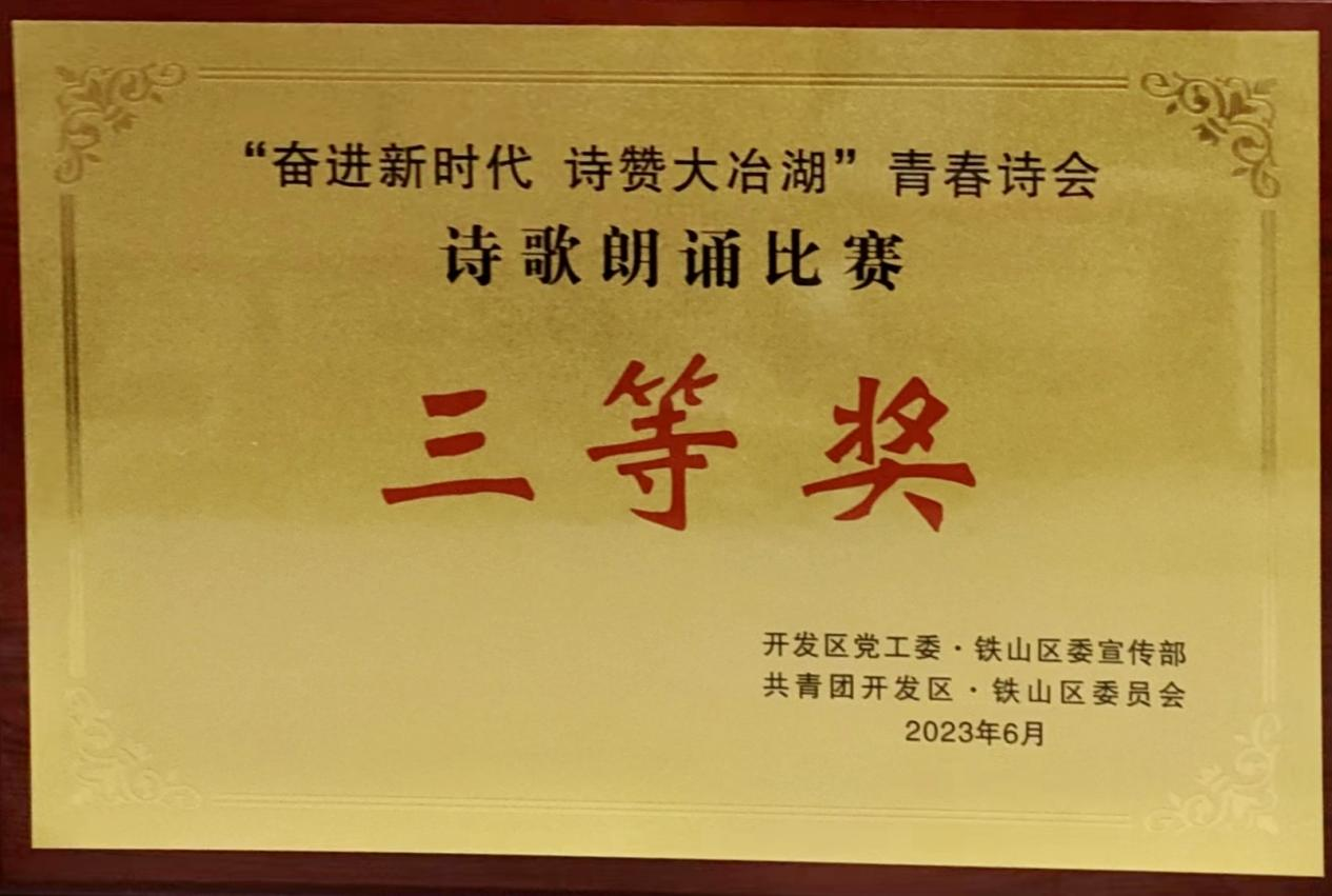 (通讯员:苏祎)青春礼赞,建功时代。6月25日,由开发区党工委·铁山区委、开发区管委会·铁山区政府主办,党工委·区委宣传部、团区委承办的青春诗会朗诵比赛在市展演。在此次活动中,PG线上平台(集团)官方网站参赛作品“青春携诗意,活力漫开铁”诗伴舞和“林茂水美大冶湖”配乐诗分别荣获“一等奖”、“三等奖”。