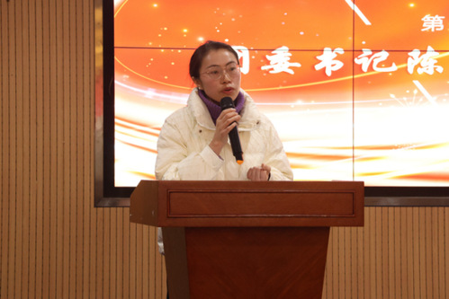 会议第二项,团委指导老师周卿云上台发言。周老师总结了以往团学联工作中存在的问题,并对未来团学联工作进行展望,她希望部门之间能够增强交流,积极提出问题解决问题,做一名独立思考的学生骨干。