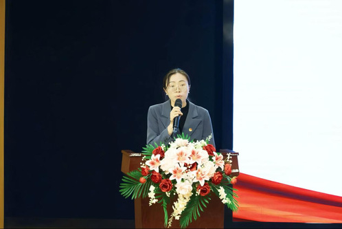 红旗团总支人文学部团学指导老师胡玉文代表红旗团总支发言。她表达了对校党委、校团委及人文学部各级领导的感谢,并总结了人文学部团总支在过去一年取得的各项成绩。她表示,未来将持续从思想引领、组织建设与优化服务体系三个方面发力,带领广大团员青年踔厉奋发,勇毅前行。