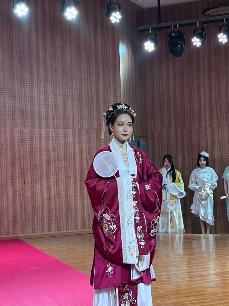 比赛伊始,主持人详细介绍了此次活动的评分标准并宣布比赛正式开始伴随着在场观众热烈的掌声,一号选手武如钰同学身着红色汉服,手执圆扇,步摇微晃,尽展端庄大气的国风美,令台下的观众不禁连连赞叹。紧接着,四号选手李雨夏同学身穿一袭碧绿的旗袍映入眼帘,似早夏娇嫩的荷叶,清新灵动。在部分选手展示完后,来到了比赛的中场休息时间,由舞蹈队带来的节目令台下的观众沉浸其中。在所有选手展示完毕后,文艺部的曹颖同学带来了精彩的琵琶演奏,如听仙乐耳暂明。最后,在各位评委评分并得出获奖名单后此次比赛正式结束。