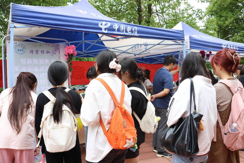 紫薇盛放映诗意,翰墨飘香润心田。活动不仅展现了紫薇花的美丽与文化魅力,更通过诗词的诵读、创作与赏析,让同学们深入体验传统文化的博大精深。活动一共分为词海拾贝、墨客追踪、诗宫探秘、飞花令四个游戏板块,通过每个环节的积分累计兑换精美定制的团扇、水杯等奖品,人文学部紫薇诗词文化节活动现场热闹非凡,吸引师生们伫足,诗词爱好者齐聚一堂。