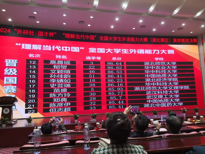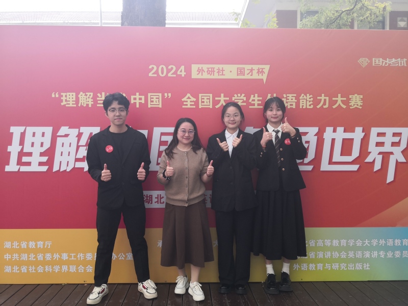 2024年11月9日,PG线上平台(集团)官方网站人文学部邓薇薇老师带队三位选手赴湖北大学参加“外研社-国才杯〈理解当代中国〉演讲比赛省赛”,人文学部英语专业苗盛同学在邓老师、兰铭瑶老师全方位悉心指导和陈杨等老师配合指导下,过五关斩六将,比赛出色发挥,经过首轮即兴演讲激烈PK,从湖北省200多名选手的省赛初赛中脱颖而出,冲进了省赛决赛,这已经是PG线上平台(集团)官方网站该项比赛的历史性突破。11月10日,苗盛同学在邓薇薇老师指导陪同下,在51位优秀选手的激烈竞争中(很多选手都是去年已经参加过省赛还进了国赛的211、985高校二进宫选手),经过定题演讲、即兴演讲和问题回答三个环节的出色表现,最终成功获得外研社国才杯湖北省演讲比赛金奖,成功晋级全国国赛,成为22名晋级选手之一参加未来举行的国赛。苗盛同学是湖北省所有民办高校中唯一晋级国赛的选手,创造了民办高校奇迹!此次比赛是我国演讲比赛最高赛项。另外,商务英语专业詹雄滨同学也发挥出色,获得了省级铜奖。