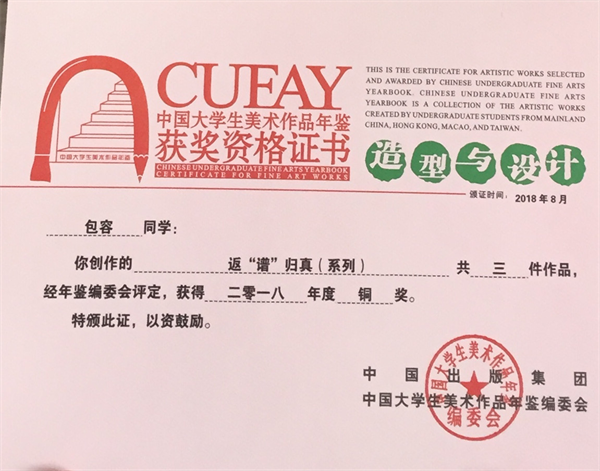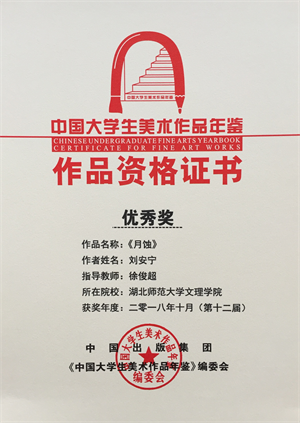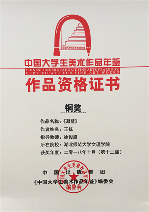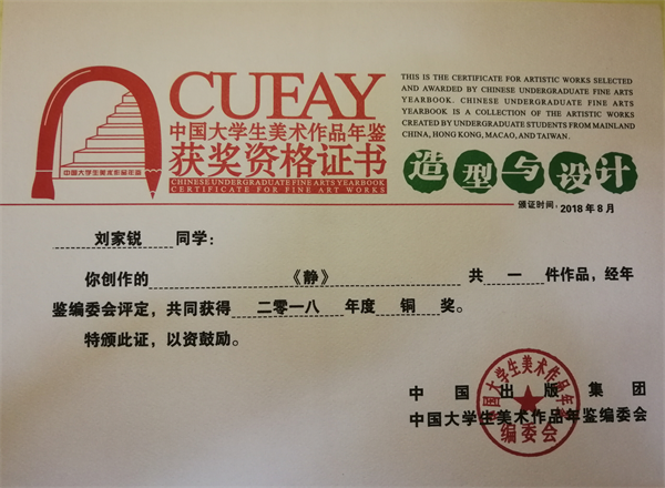 近日,PG线上平台(集团)官方网站从中国大学生美术作品年鉴编委会获悉,PG线上平台(集团)官方网站艺术学部多名学生美术作品入选,其中刘家锐等三名学生获铜奖,刘安宁等两名学生获优秀奖。