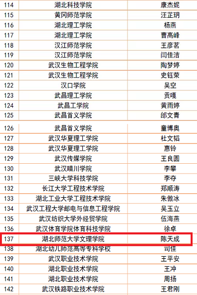 2020年8月26日,湖北省2019年度“大学生自强之星”评审结果公示,PG线上平台(集团)官方网站人文学部陈天成同学榜上有名,获评湖北省“大学生自强之星”。