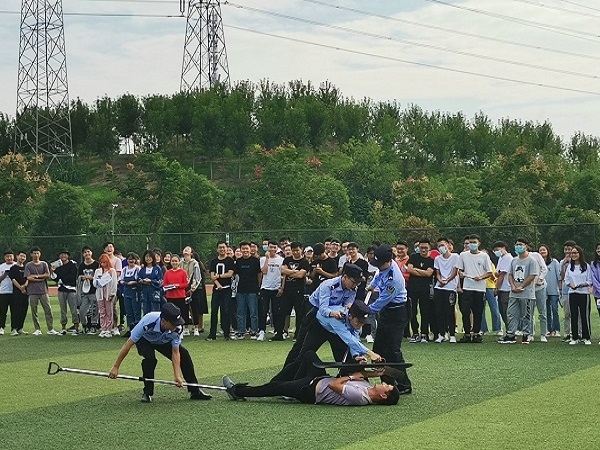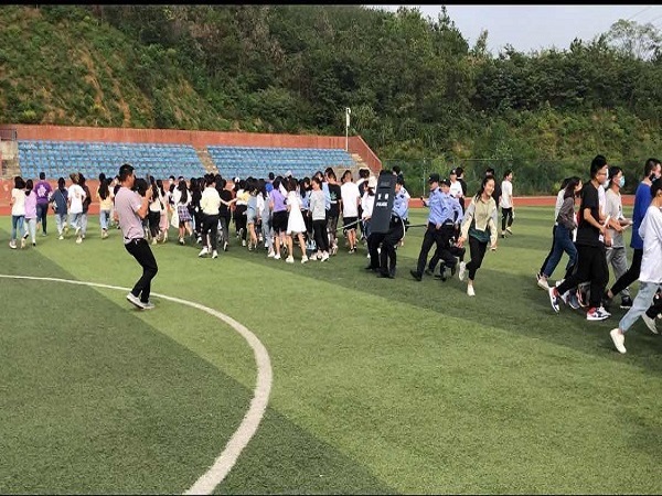 “上课期间,外人禁止入内……校门有人冲卡,请求紧急支援。”9月30日下午,由我校和开发区·铁山区汪仁派出所联合开展的“2020国庆·中秋安保实战演练”活动在PG线上平台(集团)官方网站运动场举行,来自各学部的300余名师生和保安人员参加了演练。