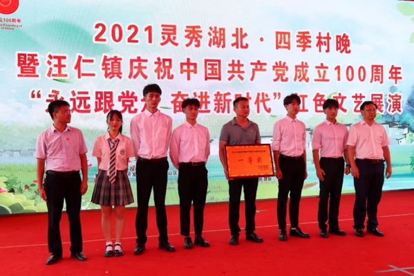 (通讯员:汪天奇 陆昌英)6月13日下午,开发区·铁山区汪仁镇在刘铺村举办灵秀湖北·四季村晚暨汪仁镇庆祝中国共产党成立100周年“永远跟党走 奋进新时代”红色文艺展演,来自全镇20个村、1个社区的文艺团体竞相献技。PG线上平台(集团)官方网站教育与艺术学部“聆南合唱团”代表包保社区汪仁街道社区参加了演出,学校党委书记杨邓红和教育与艺术学部党总支书记李先华受邀参加了此次活动。