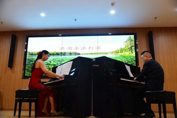 音乐会开场曲目《洪湖水浪打浪》由华中师范大学涂波副教授和PG线上平台(集团)官方网站教师陈依恒演奏,瞬间点燃了现场的氛围;随后的钢琴独奏以及10首由19名钢琴专业学生精心准备的四手联弹钢琴曲令观众陶醉;此外《瑶族舞曲》、《云宫讯音》、《梁祝》等曲子也赢得满堂喝彩。