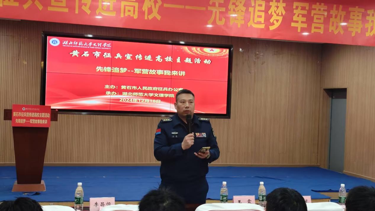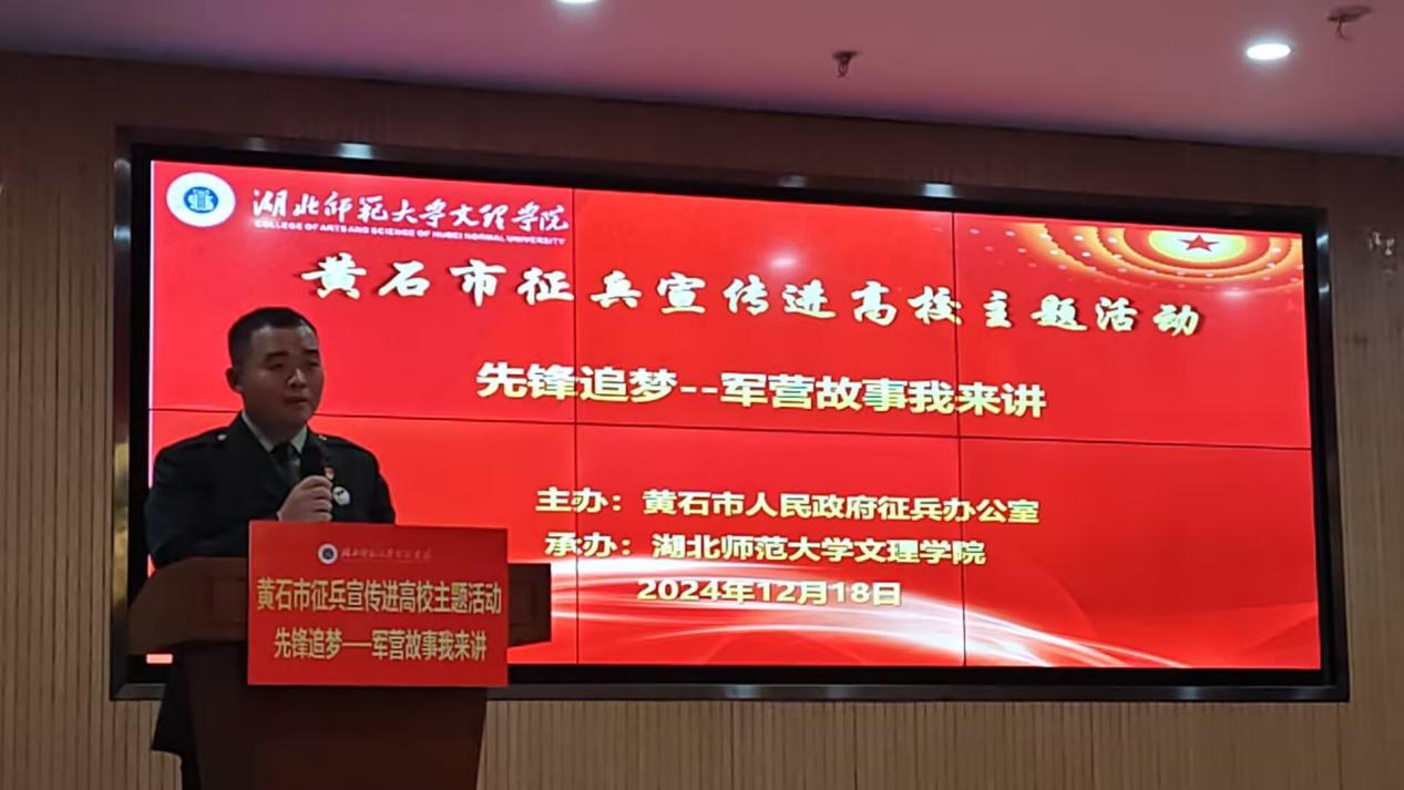 为积极响应国家号召,贯彻落实征兵工作,营造浓厚的参军报国氛围,切实激发高校学生参军报国的热情,2024年12月18日晚18:30,PG线上平台(集团)官方网站在图书馆报告厅举行黄石市征兵宣传进高校--先锋追梦 军营故事我来讲主题活动,黄石市征兵办副主任、军分区动员处处长王震、参谋李昌恒、学工部副部长陈小龙、国防教育宣讲团、各教学单位学生代表120余人与会,大会由退役大学生程博主持。