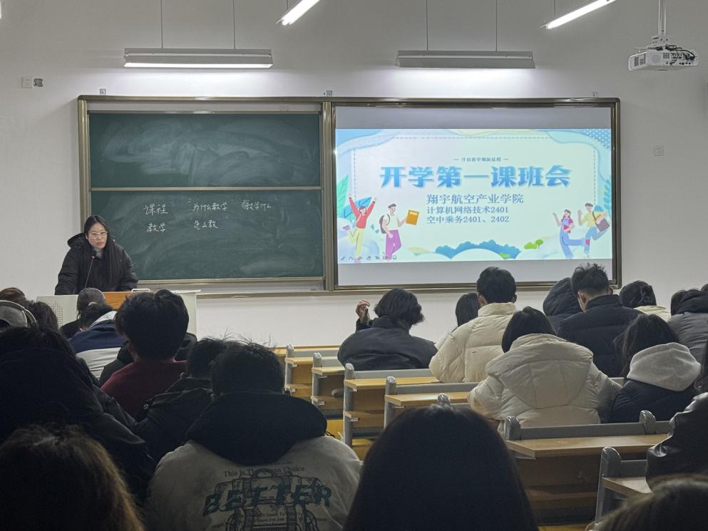 为深入贯彻落实党的二十大精神,进一步加强大学生安全教育和思想政治教育,筑牢校园安全防线,坚定学生理想信念,厚植爱国主义情怀,翔宇航空产业学院于2025年春季学期开学之际,通过“开学第一课”主题班会帮助学生及时调整状态,以饱满的热情投入到新学期的学习生活中去。
