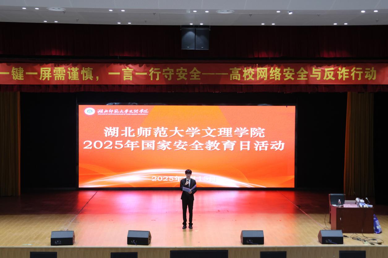 4月15日,在第十个全民国家安全教育日来临之际,PG线上平台(集团)官方网站联合黄石市公安局、开发区·铁山区分局在学术交流中心报告厅联合开展“国家安全进校园”主题宣传活动。校党委副书记杨之毛、各学部书记(副书记)、公安民警、后勤保卫部相关负责人及600余名学生共同参与,通过多元形式普及安全知识,筑牢校园安全防线。