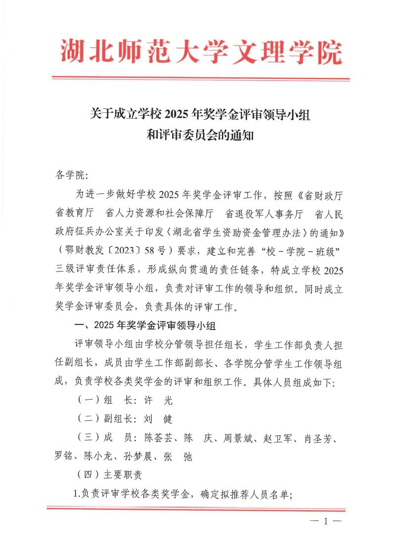关于成立学校2025年奖学金评审领导小组和评审委员会的通知