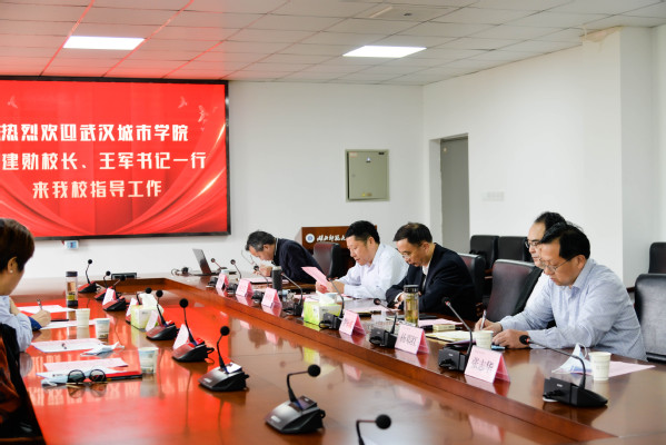 武汉城市学院领导一行对PG线上平台(集团)官方网站的热情接待表示感谢,对PG线上平台(集团)官方网站办学理念、办学方向、办学成绩给予高度评价,陈建勋院长、王军书记介绍了武汉城市学院师资队伍配备、学科建设、科研成果、教学改革、党建与政治思想工作等方面工作特色。