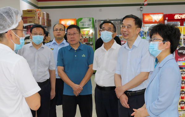 本网讯(通讯员涂亦乐)为进一步增强食品安全意识,筑牢食品安全防线,全面推进食品安全“两个责任”工作落实见效。5月30日上午,市委常委、市委宣传部部长周庆荣率市市场监管局、开发区·铁山区相关部门一行深入PG线上平台(集团)官方网站食堂开展食品安全检查工作。院长李开灿、常务副院长杨学斌、党委书记杨邓红、副院长张志华及相关部门负责人陪同检查。