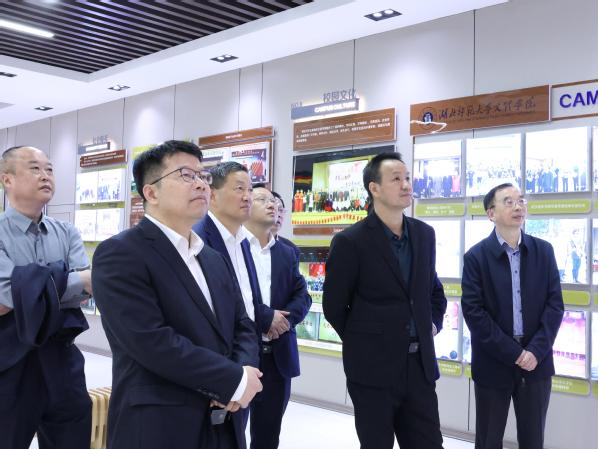 在校史陈列馆,戴伟一行观摩PG线上平台(集团)官方网站的发展建设沙盘,了解了学校的发展历史,询问师资队伍建设情况。他们对学校校园建设、办学条件、产教融合、技能培养给予了充分肯定;对学校数字化、信息化教育附能提出了新要求;对办人民满意的教育、服务地方经济发展、培养更多高素质应用型人才提出了新希望。戴伟表示,湖北省教育厅将持续支持学校的各项发展工作,希望PG线上平台(集团)官方网站能够把握机遇,为社会输送更多高质量人才。