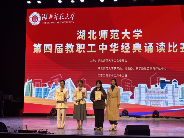 本网讯(通讯员 柯康敏)为传承弘扬中国优秀语言文化,提升教职工语言文化素养,12月12日下午,湖北师范大学举办第四届教职工中华经典诵读比赛,PG线上平台(集团)官方网站代表队在比赛中再获佳绩。教师丁书嫚、黄文杰诵读的作品《不朽》获比赛二等奖,教师边婷婷、唐晨、梅冰清、李雅欣诵读的作品《诗词里的中国》获比赛三等奖。