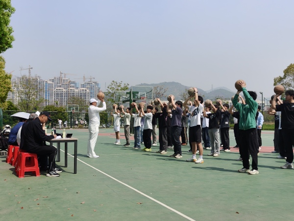 在体育组比赛中,解浏丽和徐广奕两位教师分别以花球示范套路第六段、行进间投篮动作为教学内容,通过规范的动作示范、分步讲解及循序渐进的训练设计,引导学生逐步掌握技术要领,充分展现了扎实的教学功底。