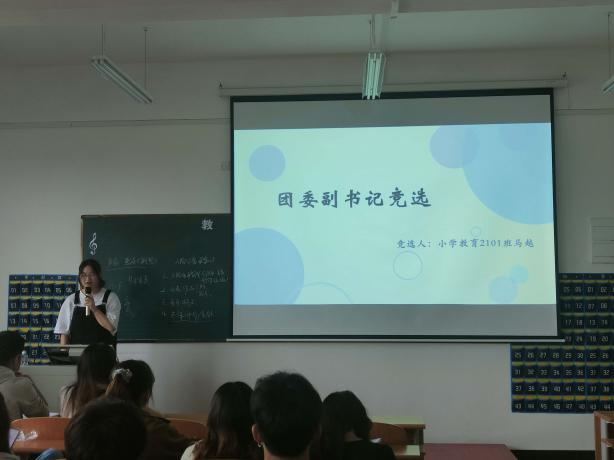 首先以PPT的形式展现了第六届团学会工作的点点滴滴,彰显了一年来学生干部在工作中的团结协作的团队意识,给每一位竞选者留下了深刻的印象。其次,每位竞选者就各自的基本情况、对工作岗位的认识以及竞选岗位工作的设想进行了演讲,他们语言自然流畅,仪态端庄大方。最后,团学会指导老师和主席团成员对于竞选学生干事进行工作提问。