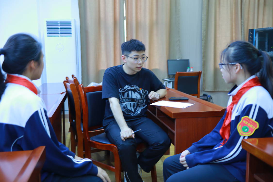 宣讲结束后带队教师与该校支部书记陈婷老师进行了访谈,从师资配置、师资需求、党员规模、新进教师党员发展、主题党日活动等五个方面进行,学生党员对两名高年级少先队大队长进行访谈,针对课后延时服务、少先队活动开展等方面进行全方位的了解和互动。活动中,白马山小学饶校长希望大学——中小学伙伴合作模式要扎实稳步的推进,双方进行友好互动交流,达成党团共建。